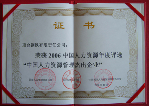 Xingtai Steel won the title of HR Management Outstanding Enterprise of China in 2006.
