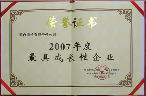 - 邢鋼榮獲“2007年度最具成長性企業(yè)”榮譽(yù)稱號(hào)