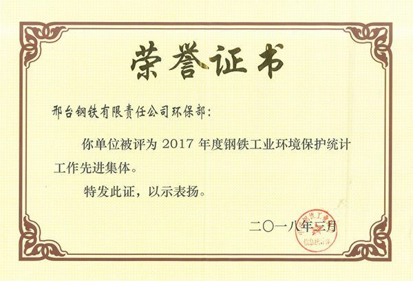 2018年3月15日,邢鋼(主要產(chǎn)品:三人牌純鐵、碳鋼、不銹鋼、軸承鋼系列盤條和熱軋帶肋鋼筋),被中國質(zhì)量檢驗協(xié)會授予“全國產(chǎn)品和服務(wù)質(zhì)量誠信示范企業(yè)”稱號。