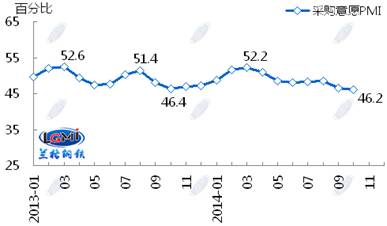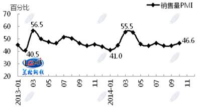 蘭格鋼鐵信息研究中心統(tǒng)計(jì)發(fā)布2014年10月鋼鐵流通業(yè)PMI總指數(shù)為47.8,環(huán)比微升0.6個(gè)百分點(diǎn)(見(jiàn)圖1),顯示鋼鐵流通市場(chǎng)活躍度略有好轉(zhuǎn)。從各項(xiàng)分指數(shù)看,10月份鋼鋼鐵流通業(yè)PMI調(diào)查的10項(xiàng)分指數(shù)5升5降。其中,企業(yè)銷量增加,下游訂單增加,但企業(yè)對(duì)后市較為謹(jǐn)慎,采購(gòu)意愿未增(見(jiàn)圖2)??傮w判斷11月鋼鐵流通市場(chǎng)需求景氣微升。