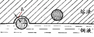 熔渣與鋼液作用,有的熔渣能夠吸收夾雜物,有的熔渣反而增加鋼中的夾雜物。鋼液中夾雜物顆粒進入熔渣被吸收,如下圖所示,自由能變化為: