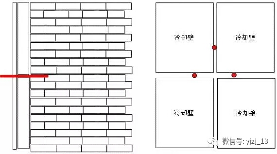 由于砌筑或生產(chǎn)過程中的熱膨脹現(xiàn)象,會在爐皮與冷卻壁間以及冷卻壁與爐缸炭磚之間產(chǎn)生氣塞,尤其在冷卻壁與炭磚之間的氣塞,會嚴重降低冷卻效率,致使炭磚熱面外擴,熔蝕加快。換角度說:只有消除氣塞,冷卻系統(tǒng)才會發(fā)生作用,將熱量傳遞出來,利于爐缸內(nèi)形成渣鐵保護層,促進爐缸的安全長壽。
