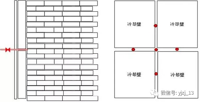 (3)對鐵口下方熱流強度較高的冷卻壁預留高壓工業(yè)水支管(1.6MPa)。