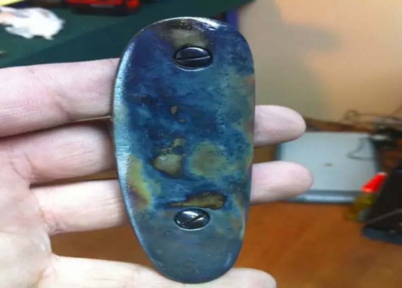 真正的藍(lán)鋼,和表面經(jīng)涂漆(或鍍層)、化學(xué)試劑浸染等表面處理的鋼是有區(qū)別的。我們知道鐵銹的主要成分是Fe2O3,俗稱鐵紅,常溫下呈紅棕色,在水合作用下,鐵銹會(huì)發(fā)生非常大的體積變化,F(xiàn)e2O3很容易剝落,導(dǎo)致典型的鐵銹紅色。