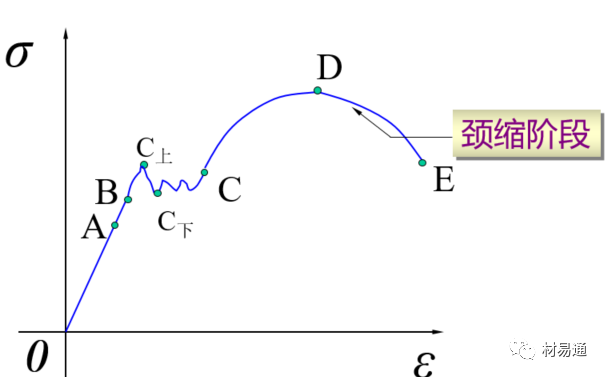 CD—強(qiáng)化階段,DE—頸縮階段