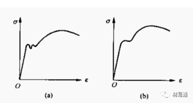 a是低碳鋼的應(yīng)力-應(yīng)變曲線,它有鋸齒狀的屈服階段,分上下屈服,均勻塑性變形后產(chǎn)生縮頸,然后試樣斷裂;