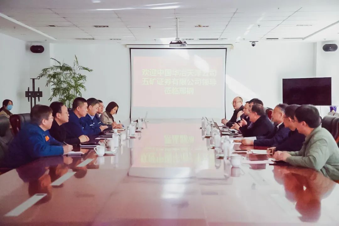在熱烈、友好的融洽氛圍中,邢鋼公司領(lǐng)導(dǎo)張育明對(duì)中國(guó)華冶天津公司、五礦證券的領(lǐng)導(dǎo)蒞臨邢鋼表示歡迎,并就邢鋼特鋼之路、公司轉(zhuǎn)型升級(jí)項(xiàng)目等做簡(jiǎn)要介紹。他指出,邢鋼專注于工業(yè)用線材,堅(jiān)持實(shí)施精品戰(zhàn)略,已成為國(guó)內(nèi)特鋼工業(yè)線材領(lǐng)域的標(biāo)桿企業(yè)。今后,公司將借力轉(zhuǎn)型升級(jí)搬遷改造的春風(fēng),加快建設(shè)步伐,引領(lǐng)中國(guó)鋼鐵綠色發(fā)展。張育明董事長(zhǎng)表示:希望雙方按照“合作共贏、互利互惠”原則,在技術(shù)、資金、建設(shè)等方面加強(qiáng)合作、共赴美好。