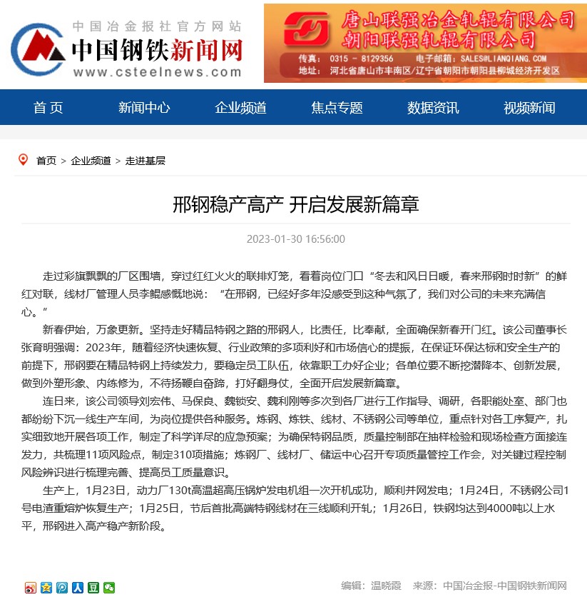 邢鋼穩(wěn)產(chǎn)高產(chǎn) 開(kāi)啟發(fā)展新篇章
