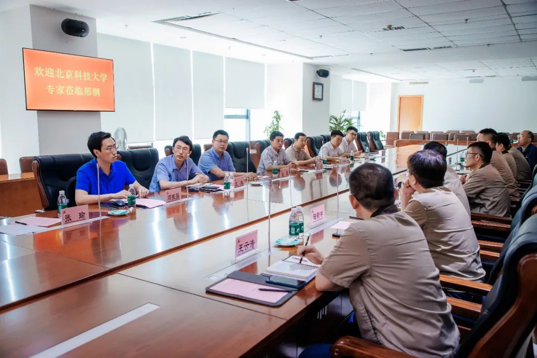 本次來訪的北京科技大學(xué)專家團隊,由北科大冶金與生態(tài)工程學(xué)院、能源與環(huán)境工程學(xué)院、工程技術(shù)研究院、綠色低碳鋼鐵冶金全國重點實驗室以及就業(yè)指導(dǎo)中心的眾多專家、教授組成。北科大專家們參觀了公司產(chǎn)品展室,了解了邢鋼的歷史沿革、生產(chǎn)概況、產(chǎn)品結(jié)構(gòu)、綠色低碳、智能制造、科技創(chuàng)新及優(yōu)勢特色等情況,隨后與邢鋼相關(guān)技術(shù)和管理人員展開了分組討論。雙方在工藝創(chuàng)新、成果轉(zhuǎn)化及人才引進等方面達成了共識,圍繞潔凈鋼冶煉、夾雜物機理、全流程質(zhì)量管控、連鑄偏析、脫碳機理等技術(shù)工作層面課題進行了深入的研討,就產(chǎn)學(xué)研合作、招聘崗位、冶金/材料等相關(guān)專業(yè)生源就業(yè)情況、薪資福利等方面進行了有效溝通。
