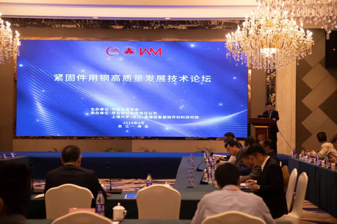 為了促進我國緊固件用冷鐓鋼的高質(zhì)量發(fā)展,共創(chuàng)緊固件產(chǎn)業(yè)新質(zhì)生產(chǎn)力。4月19日,中國金屬學(xué)會、邢臺鋼鐵有限責(zé)任公司、上海大學(xué)聯(lián)合主辦的緊固件用鋼高質(zhì)量發(fā)展技術(shù)論壇在“緊固件之鄉(xiāng)”浙江嘉興海鹽縣隆重舉行。中國金屬學(xué)會副理事長兼秘書長王新江、邢鋼黨委書記兼董事長張育明、海鹽縣副縣長章劍鋒、浙江省緊固件行業(yè)協(xié)會秘書長沈家華、上海大學(xué)(浙江)高端裝備基礎(chǔ)件材料研究院(簡稱:“上善院”)院長董瀚出席論壇并作主旨講話。