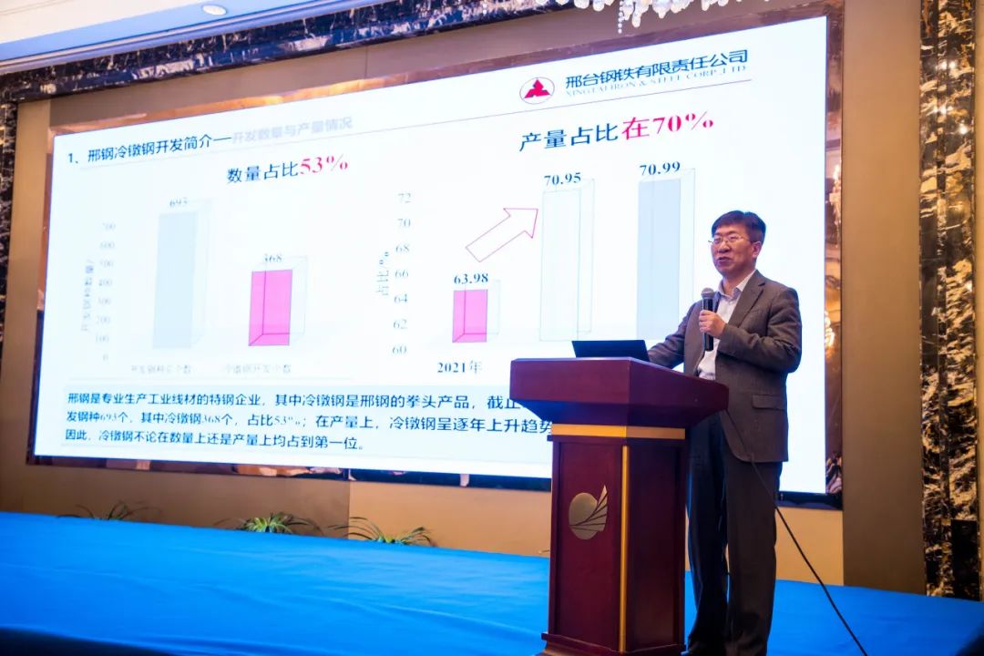 期間,邢鋼總經(jīng)理彭世丹作了《新規(guī)劃引領(lǐng)新未來,新邢鋼再鑄新輝煌》報告,邢鋼董事長助理、總工程師田新中作了《緊固件用鋼的開發(fā)和質(zhì)量控制技術(shù)》報告。浙江國檢檢測技術(shù)公司副總經(jīng)理王慧、晉億公司質(zhì)量技術(shù)部經(jīng)理張勇、中化創(chuàng)新研究院雙碳咨詢事業(yè)部總經(jīng)理劉通、上善院研發(fā)工程師楊現(xiàn)亮、南京工程學(xué)院教授趙秀明、上海納特汽車標準件公司研發(fā)總監(jiān)李軍正分別進行了行業(yè)技術(shù)報告分享。