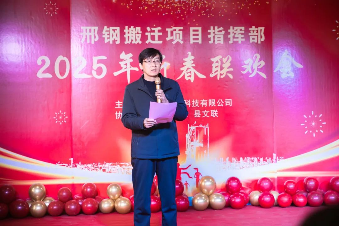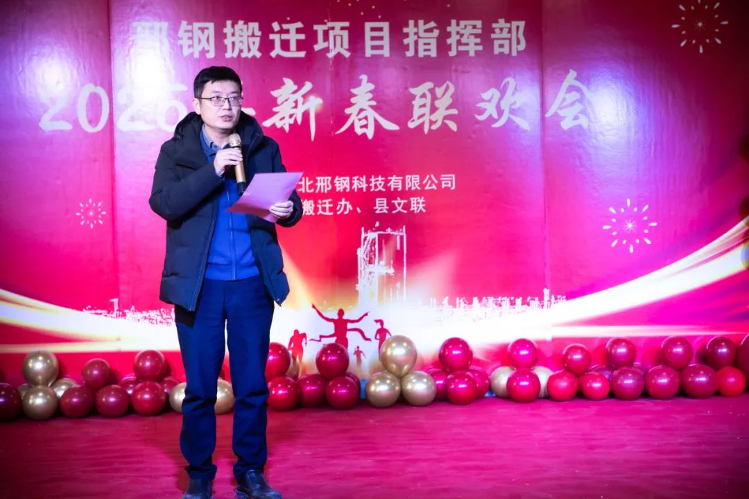 在熱烈、融洽的氣氛中,聯(lián)歡會拉開帷幕。威縣縣委常委、宣傳部長、搬遷專班班長白鋒發(fā)表致辭。他代表威縣縣委、縣政府,向所有關(guān)心支持邢鋼搬遷改造項目的各級領(lǐng)導和參與建設(shè)的同志們表達了崇高的敬意和衷心的感謝。并高度評價了邢鋼人在過去一年中展現(xiàn)出的團結(jié)協(xié)作、頑強拼搏的精神,表示威縣政府將繼續(xù)全力支持邢鋼搬遷項目,推動項目早日建成投產(chǎn),為威縣經(jīng)濟發(fā)展做出更大貢獻。