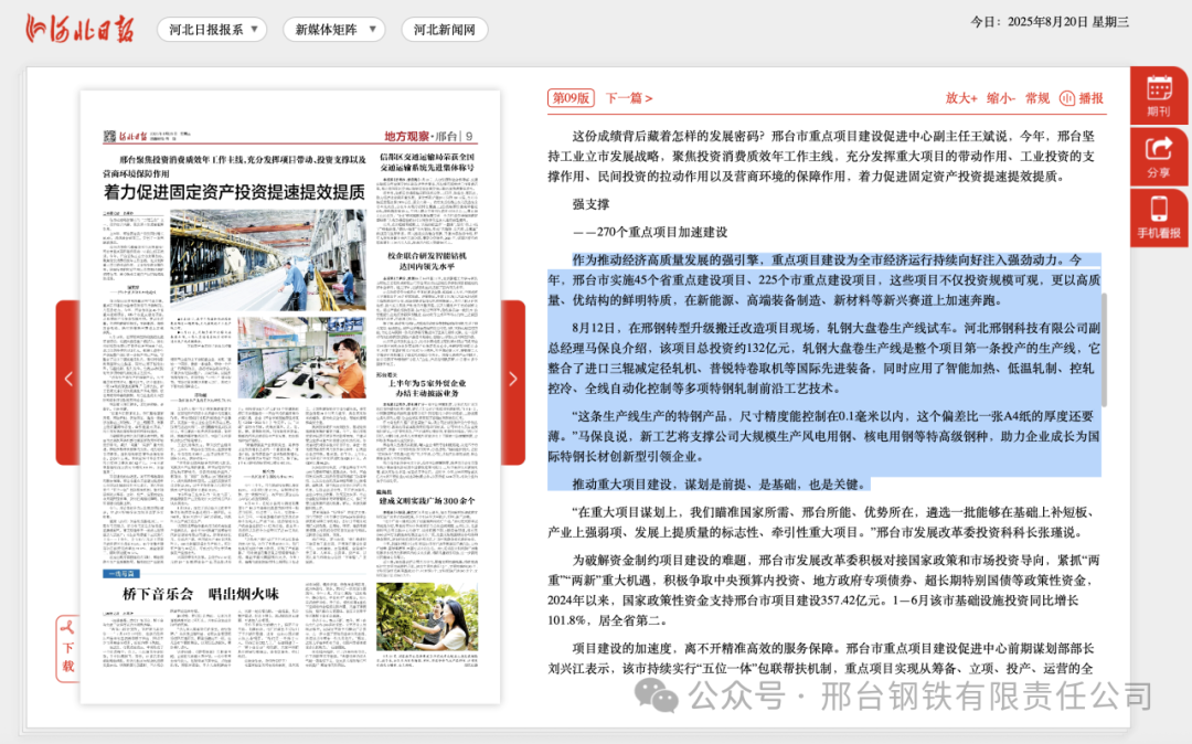 作為推動經(jīng)濟高質(zhì)量發(fā)展的強引擎,重點項目建設(shè)為全市經(jīng)濟運行持續(xù)向好注入強勁動力。今年,邢臺市實施45個省重點建設(shè)項目、225個市重點建設(shè)項目,這些項目不僅投資規(guī)模可觀,更以高質(zhì)量、優(yōu)結(jié)構(gòu)的鮮明特質(zhì),在新能源、高端裝備制造、新材料等新興賽道上加速奔跑。