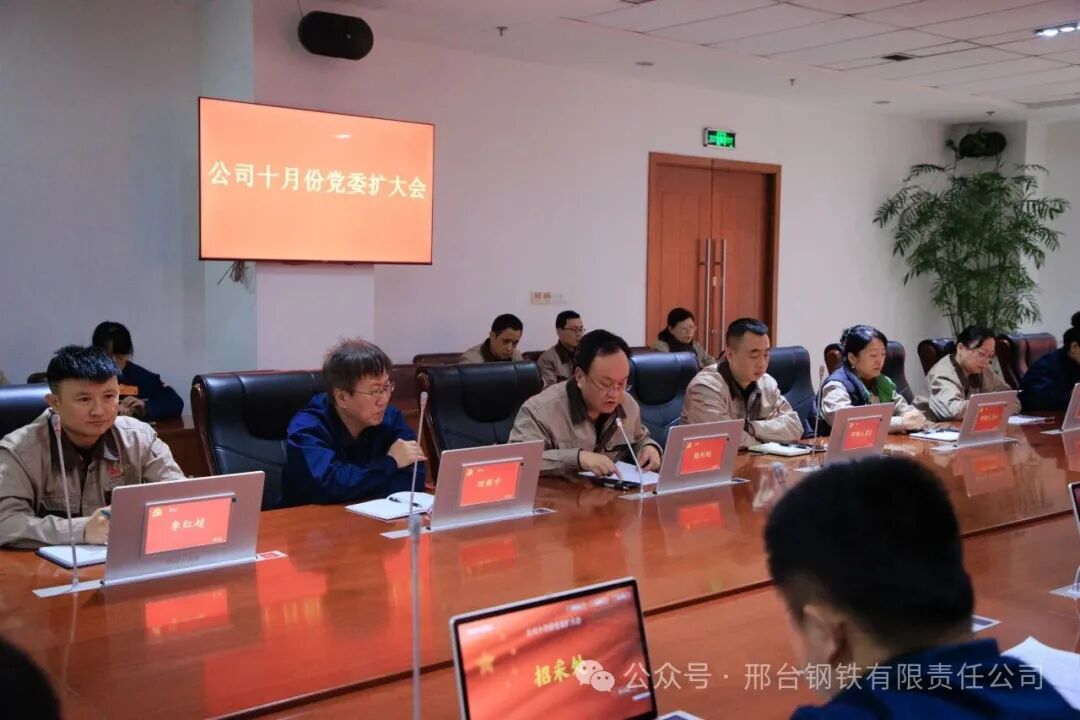 10月30日,公司黨委在公司辦公樓207會(huì)議室召開10月份黨委擴(kuò)大會(huì),公司領(lǐng)導(dǎo)田新中、魏利剛、李紅超等高層及全體中層管理人員、主任級(jí)、副主任專業(yè)職務(wù)人員參加了會(huì)議。駐威縣新廠人員通過視頻會(huì)議系統(tǒng)參會(huì)。